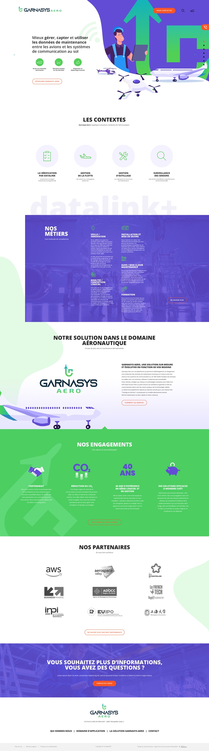 Garnasys Aero est un sytème inovant embarqué pour le contrôle au sol des données de maintenance d’appareils volants. Nous avons conçu leur identité graphique ainsi que leurs documentations bureautiques et leur site internet vitrine pour les aider à communiquer une idée valorisante et novatrice de la marque.