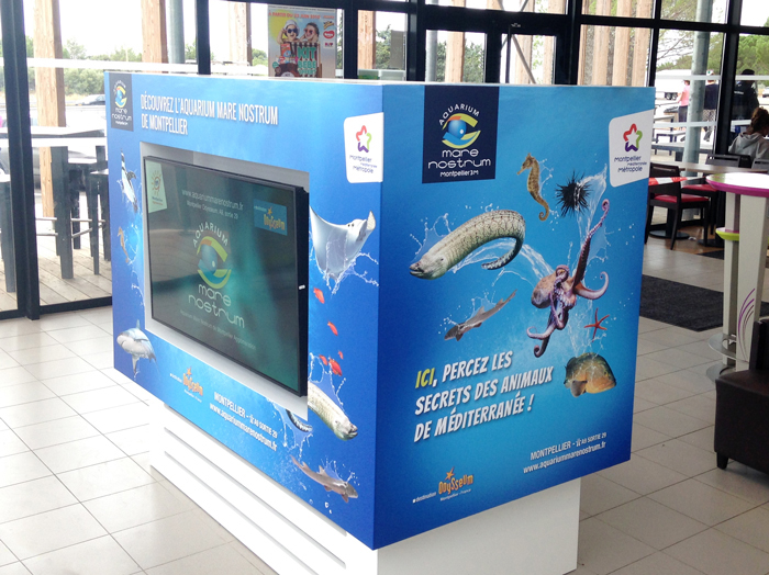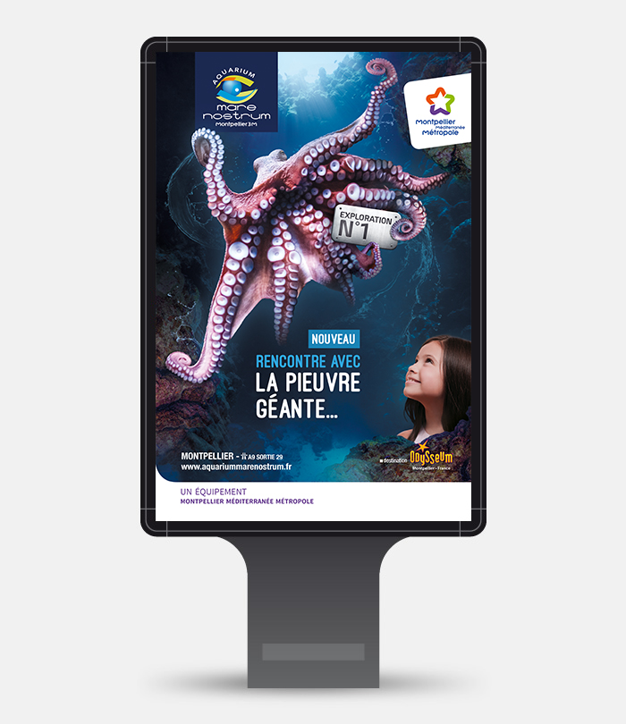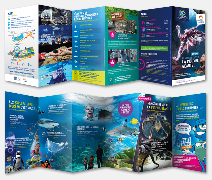 Dans le cadre de nos relations avec l’Aquarium de Montpellier Mare Nostrum, pour lesquels nous avons réalisé les illustrations et le plan interactif du bâtiment, nous avons été consulté pour reprendre leur campagne d’affichage et autres documents jusqu’à la fin de l’année 2016.