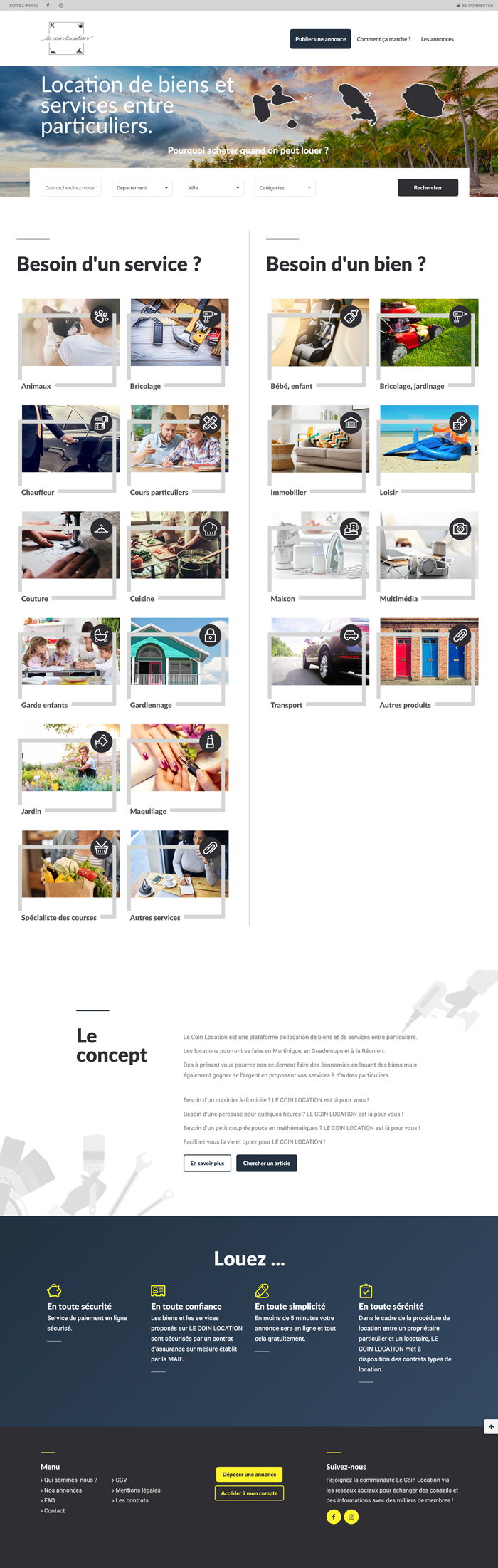Le Coin Location est une plateforme de location de biens et de services entre particuliers en Martinique, en Guadeloupe et à la Réunion.